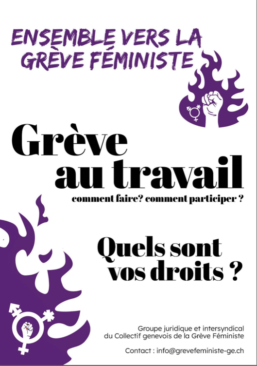 Comment faire? Comment participer? Quels sont vos droits ? Par le groupe juridique et intersyndical du collectif genevois de la grève féministe